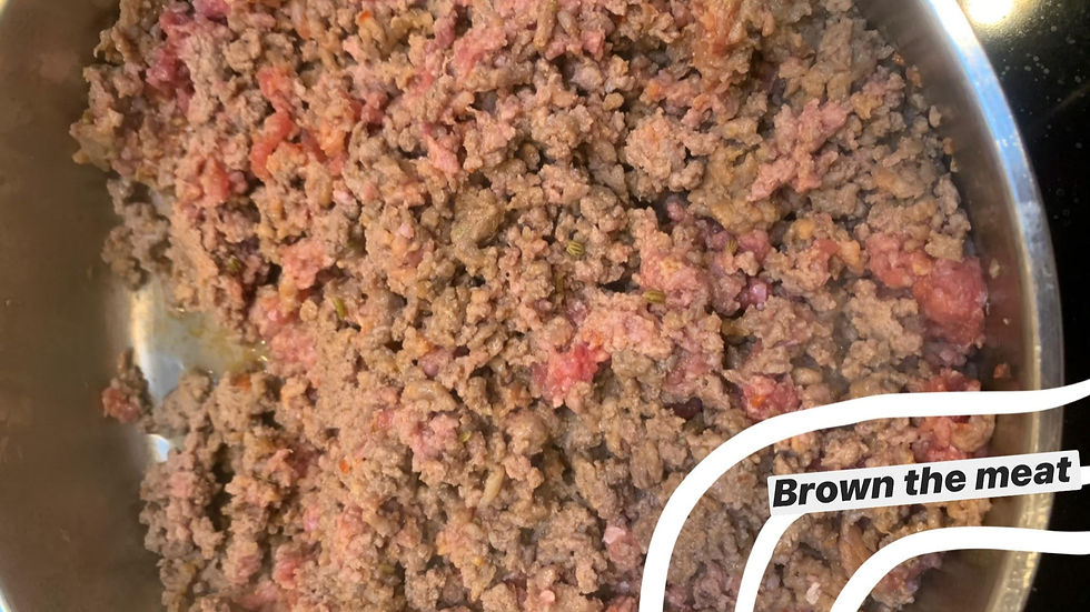 5. Sauté Garlic and spices in pan then add the Hot Italian Sausage and beef to a pan and brown.